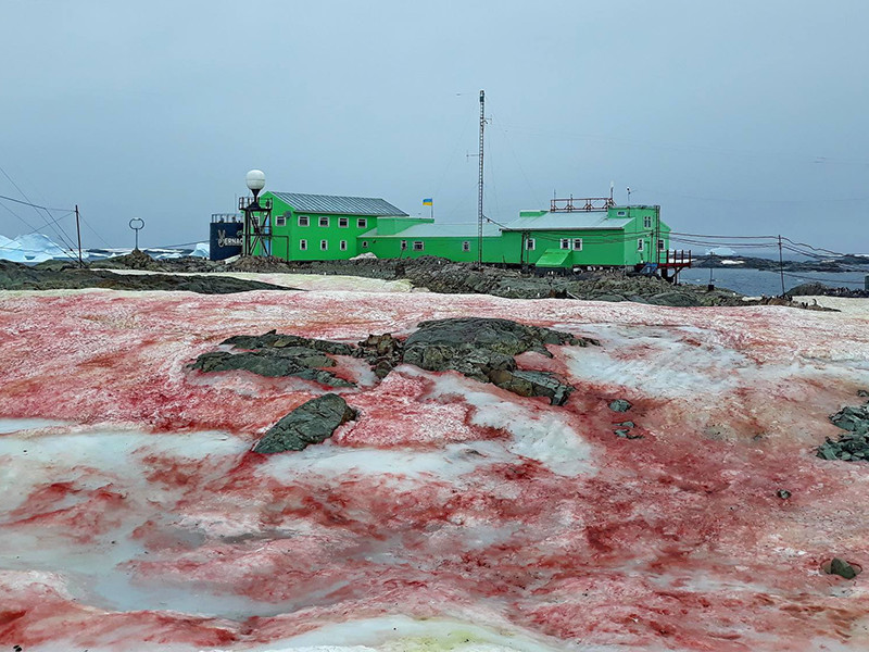 На украинской антарктической базе снег окрасился в малиновый цвет (ФОТО)