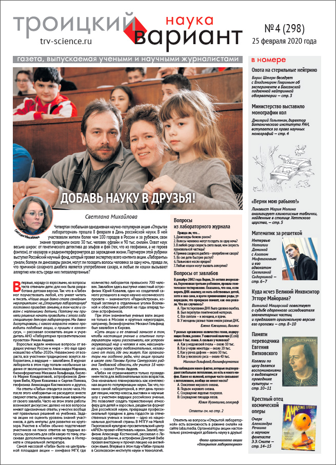 Весь номер газеты «Троицкий вариант — Наука» № 298 от 25 февраля 2020 года в PDF