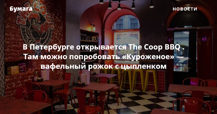 На Гороховой открывается The Coop BBQ с блюдами из курицы — от чикенбургеров до вафельных рожков с цыпленком