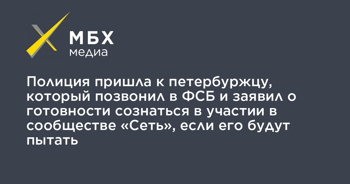 Полиция пришла к петербуржцу, который позвонил в ФСБ и заявил о готовности сознаться в участии в сообществе «Сеть», если его будут пытать