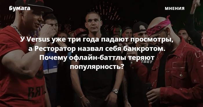 В феврале создатель Versus Александр «Ресторатор» Тимарцев объявил о своем банкротстве и миллионных долгах. На канале шоу запустили сбор средств на новые баттлы. Тимарцев говорит, что с будущим площадки «всё грустно». «Бумага» поговорила с музыкальными обозревателями о том, что произошло с Versus и почему офлайн-баттлы больше не так популярны.