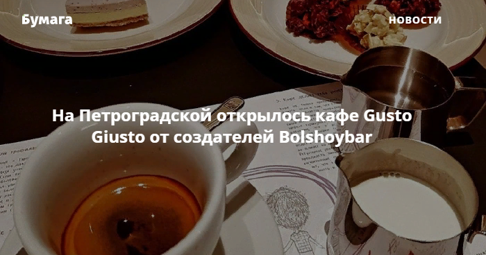 На Чкаловском проспекте, 38 открылось итальянское кафе Gusto Giusto. Это уже вторая точка заведения от ресторатора Георгия Дарцмелия, известного по проектам Bolshoybar и Литера G.