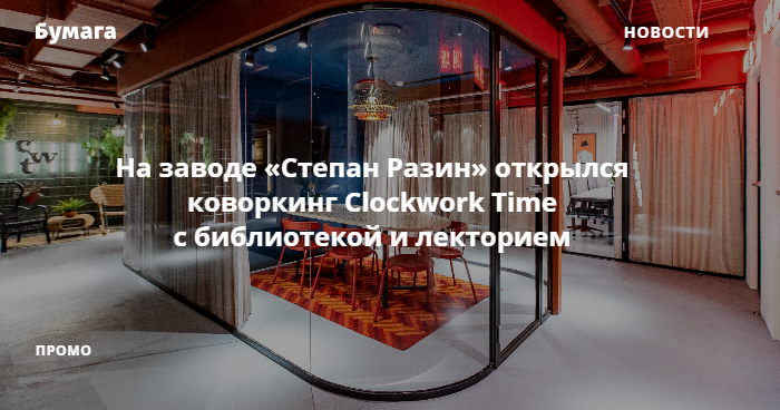 В здании бывшего бродильного цеха пивоваренного завода «Степан Разин» открылся коворкинг Clockwork Time. Он рассчитан на 200 человек и предоставляет рабочие места в опенспейсах и офисах.