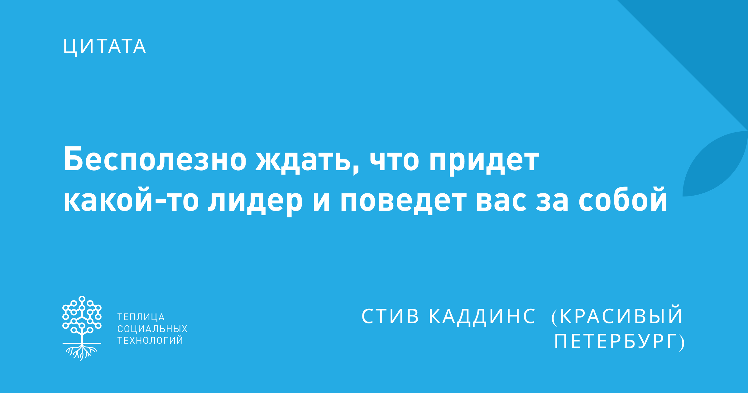 - Бесполезно ждать, что придет какой-то лидер и поведет вас за собой. Вы и есть тот лидер. Меньше ждать и сомневаться. Больше делать и добиваться.