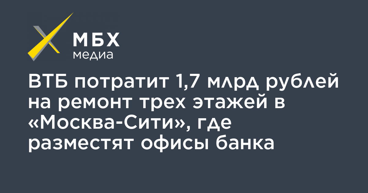 ВТБ потратит 1,7 млрд рублей на ремонт трех этажей в «Москва-Сити», где разместят офисы банка