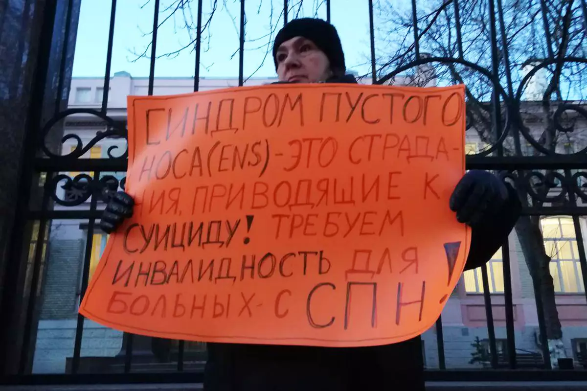 Ольга Кондратьева рассказывает про членов тематической группы в Facebook, где состоят те, кому не повезло столкнуться с синдромом пустого носа. «У нас у одной девочки уже три попытки суицида. Она вот только что вышла из психушки, ну она не может жить, ей больно! Один мальчик говорит, что год-два — и он больше не выдержит, покончит с собой. Третья девочка уже на грани, она держится, потому что ее мать не перенесет этого, ну ее мать погибнет без нее. Она страдает, держится, из-за матери. Некоторые просто в своих страданиях замыкаются, говорят, что никто ничем не может помочь. Одна со мной разговаривает, говорит, что ни во что не верит, только выживает, потому что у нее маленькие дети. Эти люди, если им приходится работать, ползают по стенкам, они скрывают от всех, чтобы их не уволили, с такими нарушениями работать невозможно».
