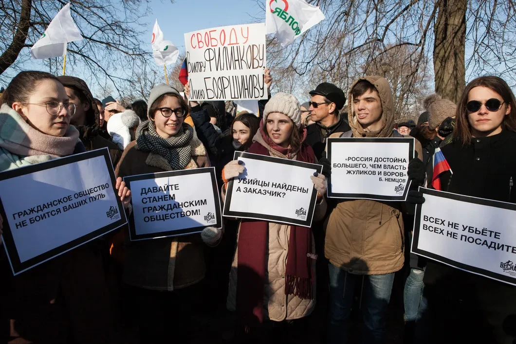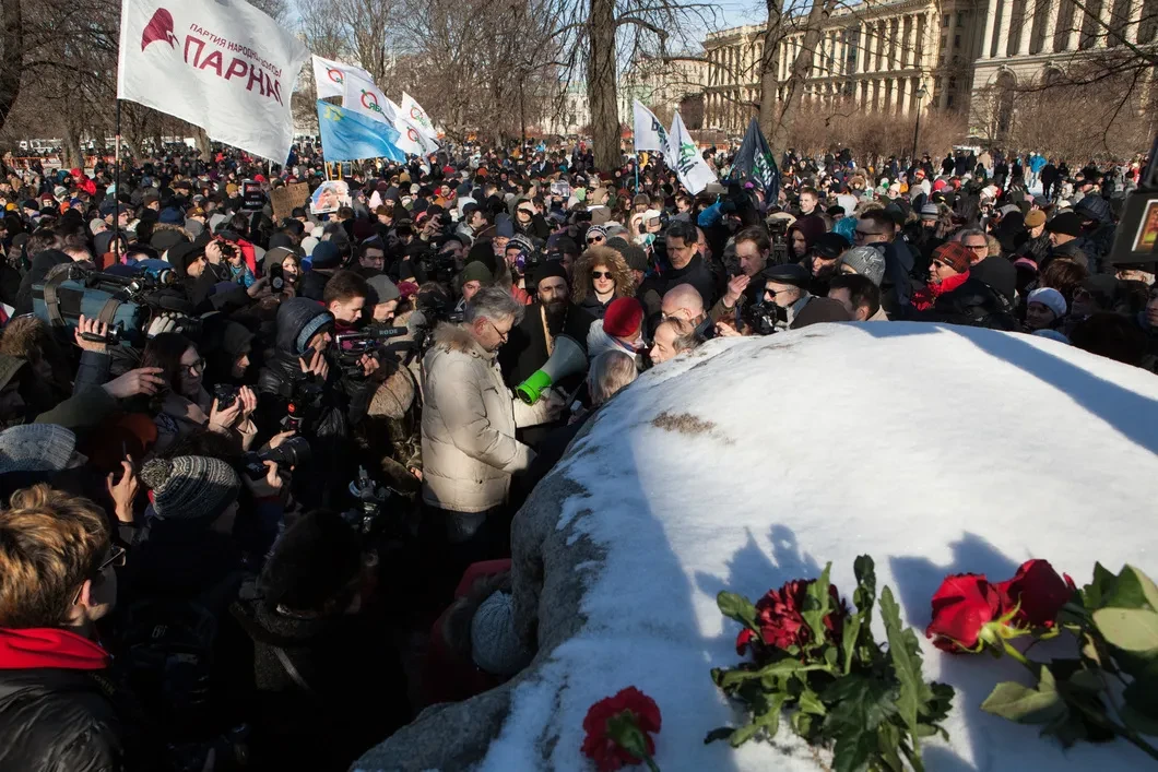 29 февраля в Петербурге состоялась акция памяти убитого пять лет назад Бориса Немцова. Участники шествия (около 1500 человек) собрались в парке возле станции метро Горьковская и проследовали до Соловецкого камня, где возложили цветы. В ходе марша полиция задержала шестерых — за плакаты, которые по мнению стражей порядка не соответствовали тематике мероприятия.