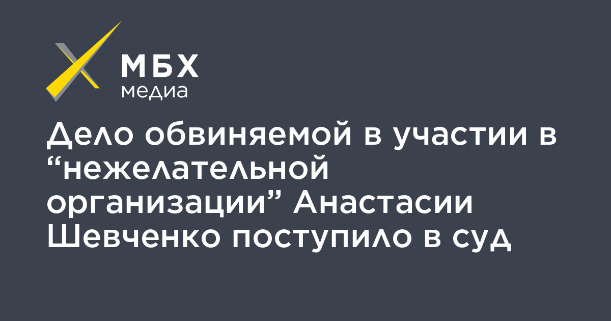 Дело Анастасии Шевченко, обвиняемой в участии в «нежелательной организации» (статья 284.1 УК), поступило в суд, сообщил «МБХ медиа» адвокат «Правозащиты Открытки» Сергей Бадамшин.