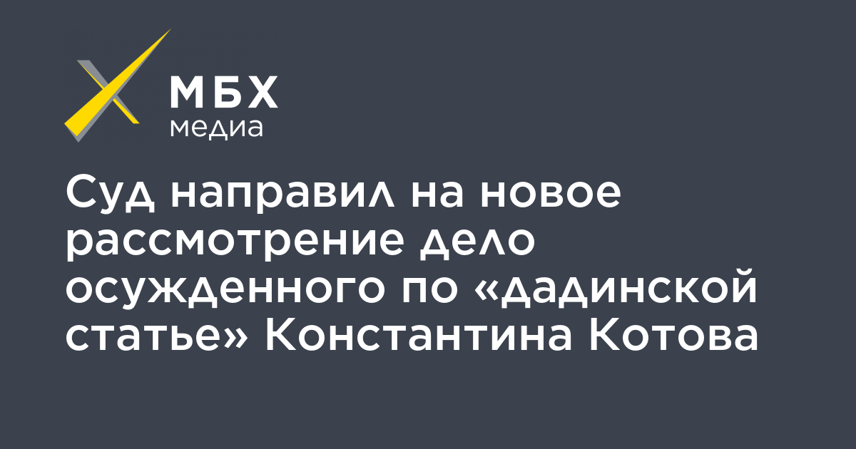 Второй кассационный суд в Москве отменил апелляционное постановление на приговор фигуранту «московского дела» Константину Котову, ранее он получил четыре года колонии по «дадинской» статье. Об этом сообщает корреспондент «МБХ медиа».