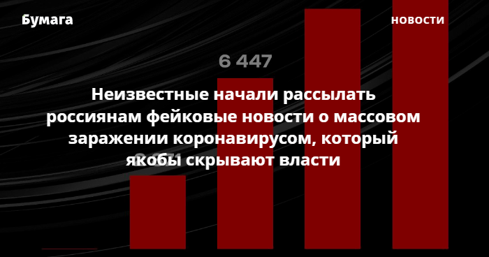 С конца февраля неизвестные рассылают россиянам тысячи фейковых новостей, согласно которым власти якобы скрывают данные о массовом заражении коронавирусом COVID-19 среди москвичей. Об этом сообщила международная компания Group‑IB, которая расследует и предотвращает киберпреступления.