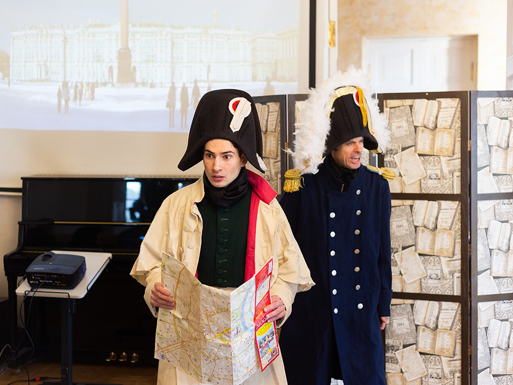 Еще здесь очень популярен образ Наполеона. Тут даже пирожное назвали в честь него! Я был настолько этим впечатлен, что написал пьесу про приключения Наполеона в России — комедию Sur la Route de Moscou («Дорога на Москву»).