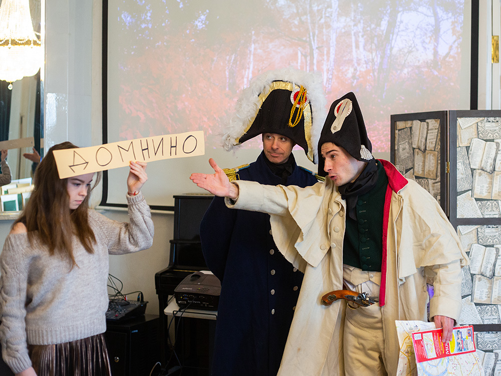Мы представили спектакль 22 февраля в библиотеке Маяковского. Всё прошло отлично, мы с друзьями остались довольны. Всего в постановке участвовало 10 человек, а на премьеру пришло около 100 зрителей.