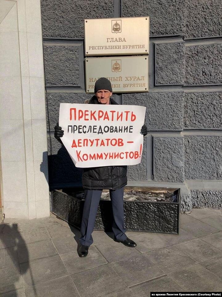 Несколько жителей Бурятии, в том числе депутаты Народного хурала республики, 3 марта вышли на одиночные пикеты в защиту депутатов от КПРФ Виктора Малышенко и Егора Олзоева, которым грозит отстранение с должностей в комитетах Хурала из-за участия в несогласованных митингах. На акции протеста в Улан-Удэ вышли 8–10 человек, сообщил редакции Сибирь.Реалии депутат Леонтий Красовский.