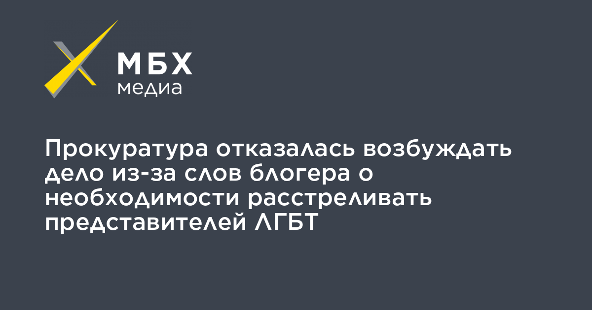 Прокуратура Курска отказалась возбуждать дело из-за постов блогера Владимира Горяинова, в которых он говорил о необходимости расстреливать представителей ЛГБТ. Об этом сообщил «МБХ медиа» юрист Никита Томилов, который получил соответствующий ответ от ведомства.