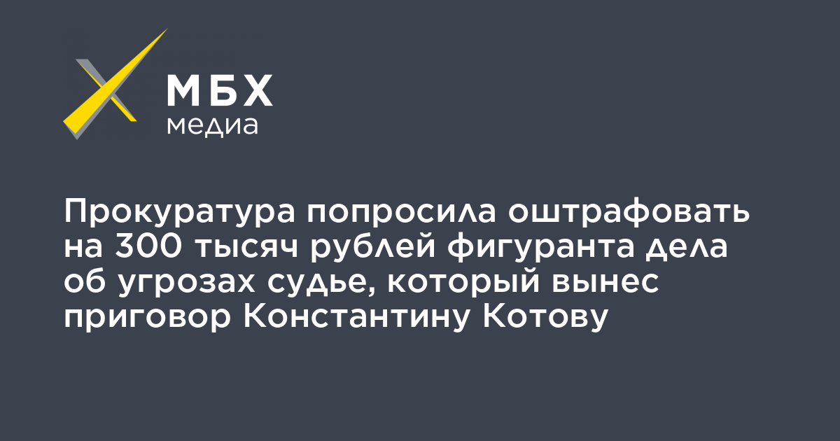 Прокуратура попросила оштрафовать на 300 тысяч рублей фигуранта дела об угрозах судье, который вынес приговор Константину Котову