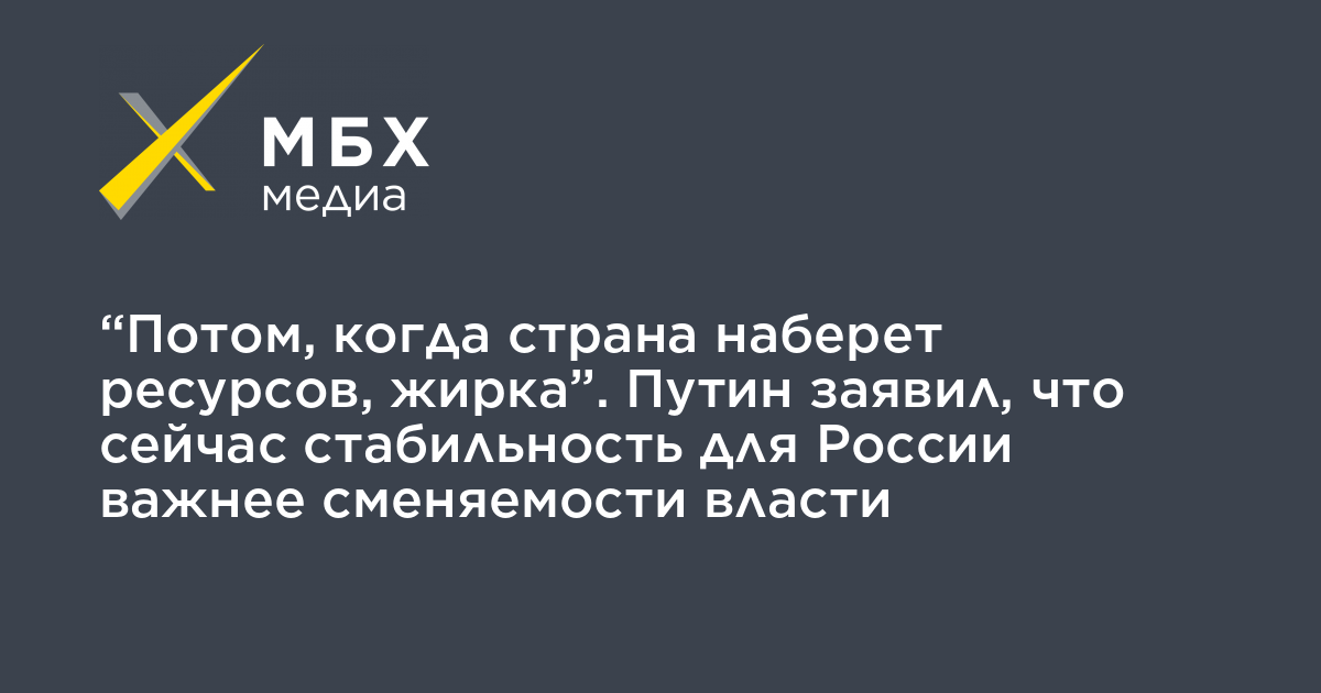 «Потом, когда страна наберет ресурсов, жирка». Путин заявил, что сейчас стабильность для России важнее сменяемости власти