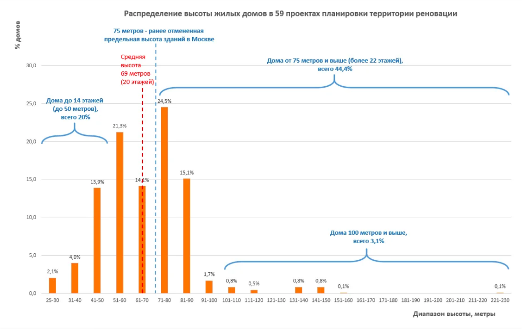 Как подсчитал муниципальный депутат района Северное Измайлово Дмитрий Барановский, 80% всех домов, которые появятся в Москве в рамках реновации, будут выше 14 этажей.