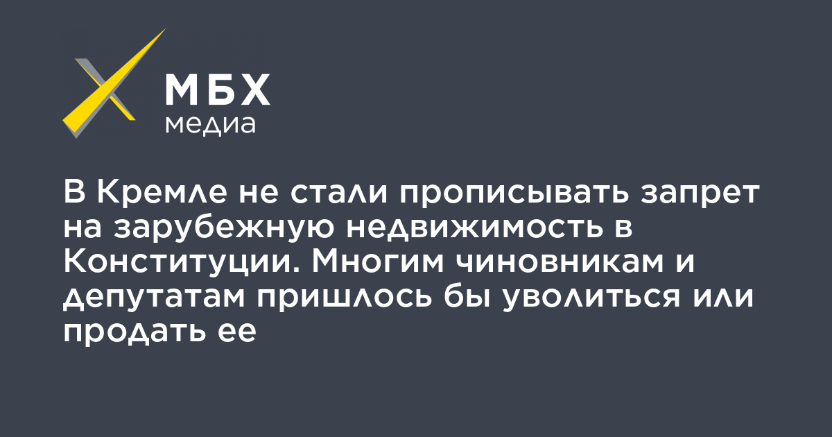 В проект поправок в Конституцию не вошел запрет на владение иностранной недвижимостью, поскольку многим парламентариям и чиновникам пришлось бы отказаться от нее или уйти со своих постов. Об этом пишут «Ведомости» со ссылкой на источники в администрации президента и Госдуме.