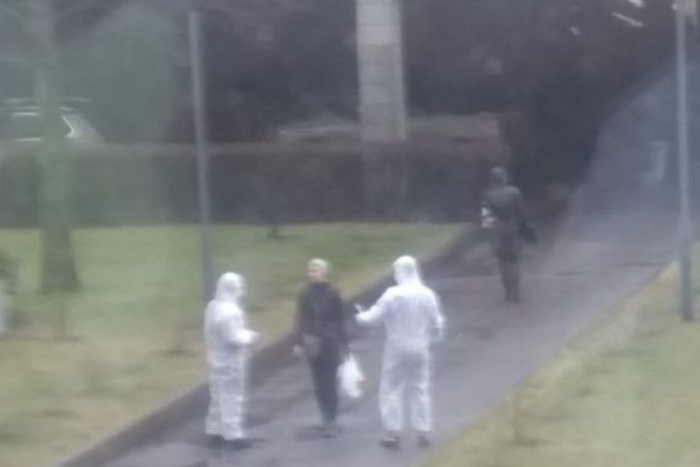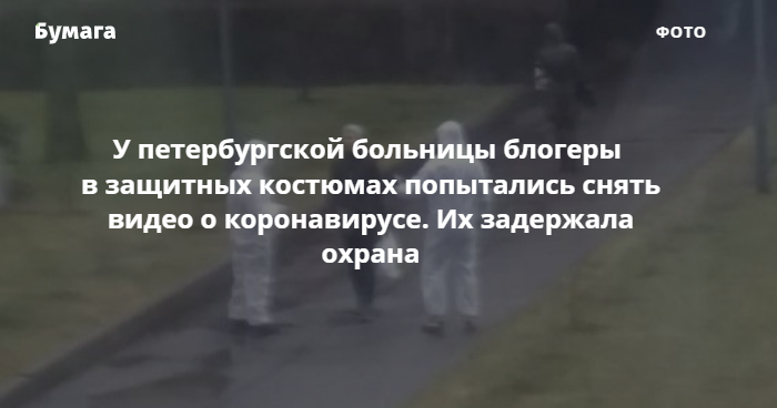 Повзун предоставил «Петербургскому дневнику» фотографию, на которой видно двух человек в костюмах химзащиты. «Достоверно неизвестно, что именно они говорили пациентам, нам они сказали, что снимают ролики для Instagram», — сказал врач.