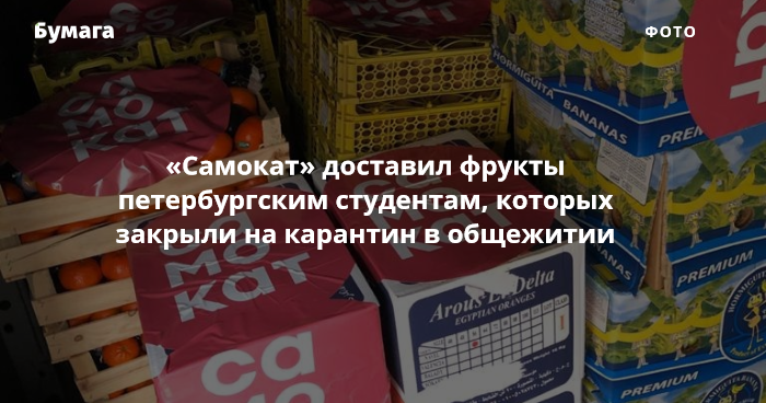 Петербургская компания «Самокат» доставила 500 килограммов фруктов в общежитие университета Мечникова, в котором объявили карантин из-за угрозы распространения коронавируса.