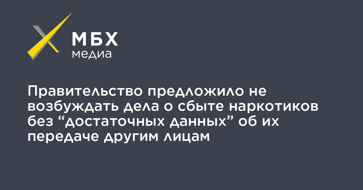 Правительство внесло в Госдуму законопроект, согласно которому уголовные дела о незаконном сбыте наркотиков (статья 228 УК) не могут быть возбуждены при отсутствии данных о виде, массе и наименовании этих веществ, а также «достаточных данных, указывающих на их передачу другим лицам». Соответствующий законопроект размещен в базе системы обеспечения законодательной деятельности.