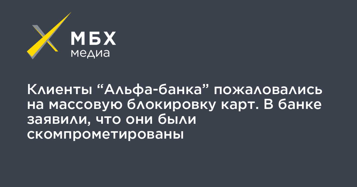 «Альфа-банк» начал блокировать карты клиентов из-за того, что получил данные о том, что номера карточек могли быть скомпрометированы, сообщили РБК в пресс-службе банка.