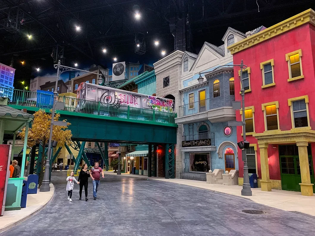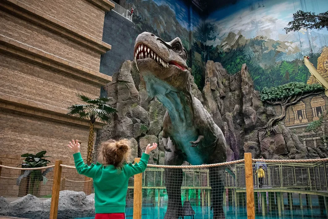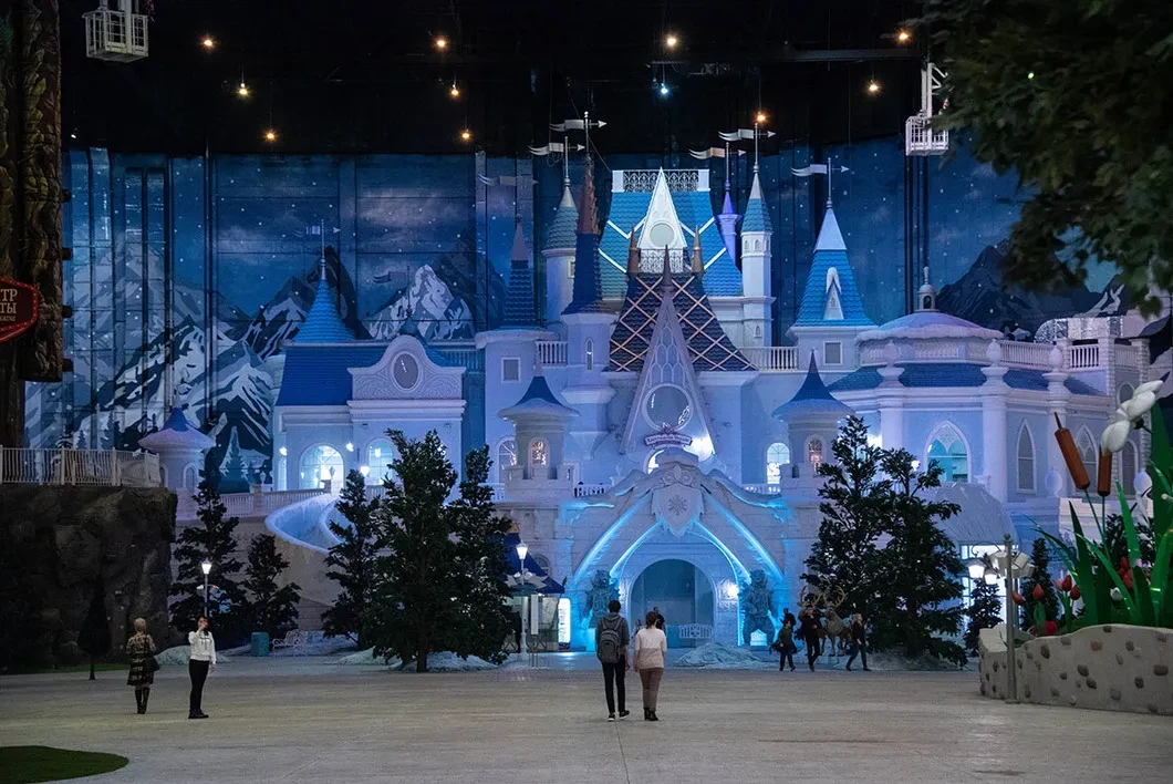 Вход в парк плавно перетекает из торгового центра: турникет — и вот я наконец-то в самом «Острове мечты». Сам парк разбит на 9 тематических зон: «Деревня Смурфиков», «Черепашки-ниндзя», Hello Kitty, «Отель Трансильвания», «Маугли в стране динозавров» (господин создатель парка явно любитель кроссоверов), «Гонка мечты», «Заброшенный дом», «Замок Снежной королевы» (здесь явная аллюзия на диснеевский мультфильм «Холодное сердце») и «Сказочная деревня».