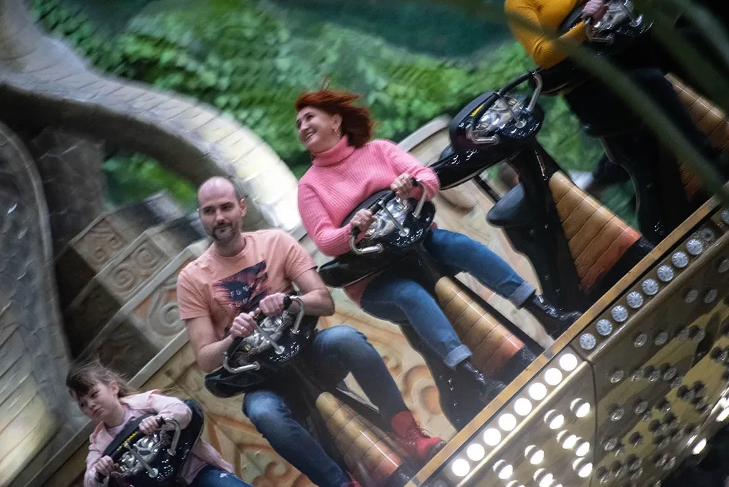 — Мы здесь уже несколько часов, много где побывали, — женщина по имени Ирина то и дело ищет взглядом свою непоседливую внучку. — Нравится. Будний день, народу мало, карусели вот. Есть, конечно, страшные аттракционы для маленьких. А цена на билет не смущает: мы в очередях не стоим, очень комфортно. Анимации, жалко, не так много: не поют, не танцуют. Ну, может, это просто все в выходные происходит. Но без этого скучновато ребенку.