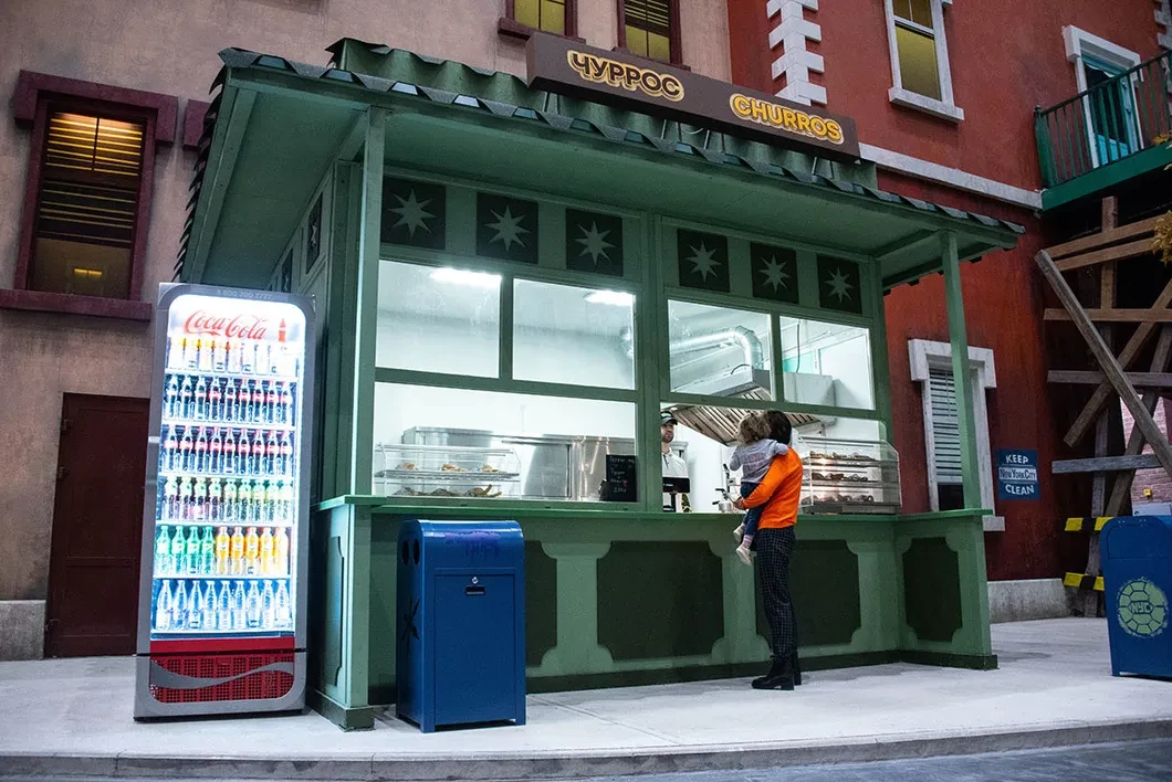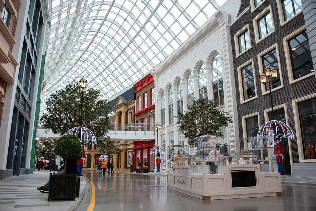 При входе — досмотр в восемь рук на четырех рамках металлоискателей. И нет, это все еще не вход в сам парк развлечений, а только проход в торговый центр, с которым он сопряжен. Сама по себе задумка торгового центра неплохая: налицо попытка воссоздать улицы Европы с фасадами старинных домов. Но сама идея точно не нова: например, в том же Outlet в Черной грязи или во Внуково Village вы точно так же можете побродить по улочкам Парижа или Барселоны. Еще несколько сот метров через галереи с табличками «Скоро открытие» на еще не открывшихся магазинах и кафе (напоминаю: с момента открытия прошла неделя) — и я практически у цели.