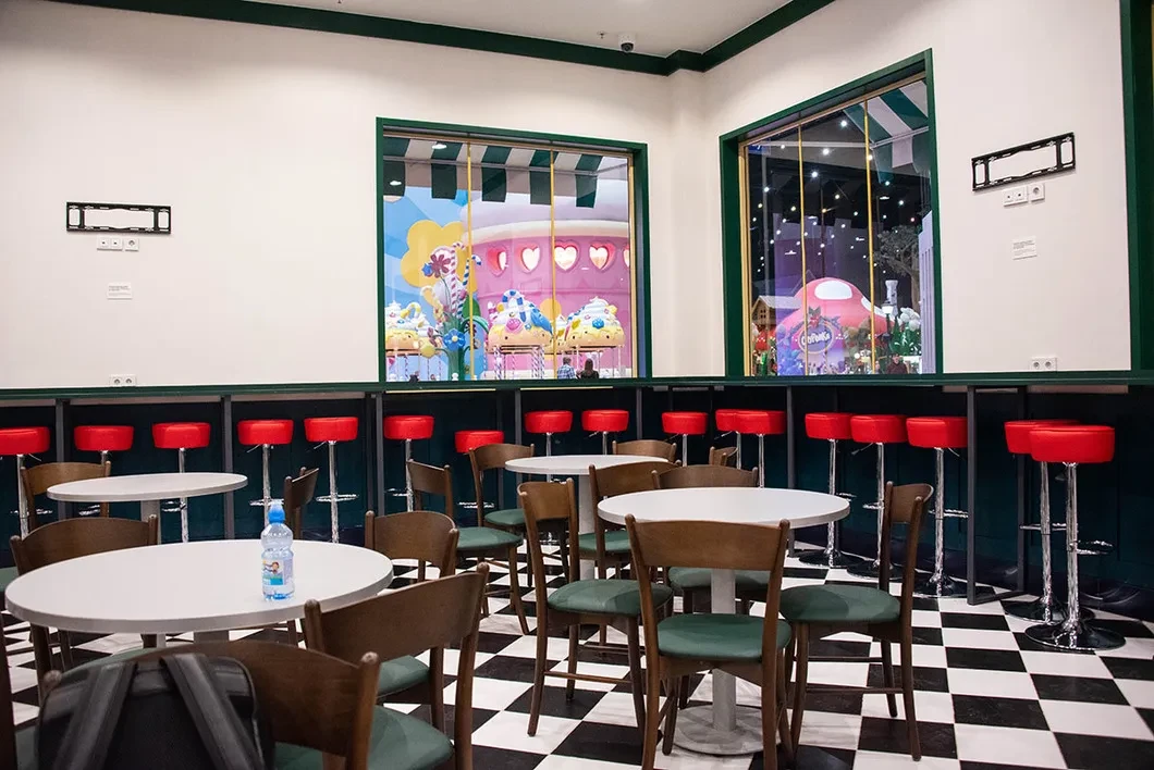 В самом центре заведения расположена касса, где можно приобрести билеты — дорогие даже по московским меркам. Один билет на взрослого (с 10 лет) в будний день будет стоить 2200 рублей, а в выходной — 2900 рублей. Билет на ребенка до 10 лет в будний день — 1900 рублей, а в выходные и праздничные — 2600 рублей.