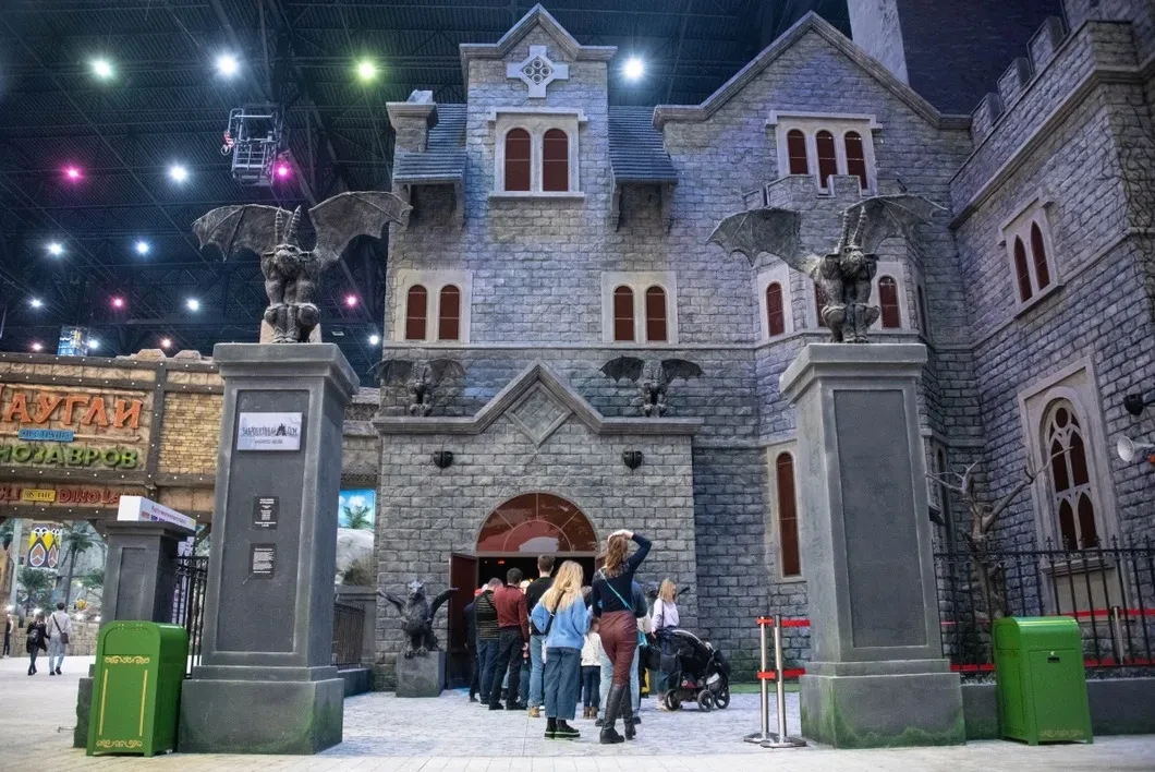 Уже перед выходом я захожу в последний кажущийся интересным для взрослого аттракцион — Заброшенный дом. Во всех развлекательных парках мира, будь то французский Диснейленд, испанский Порт Авентура, Warner Brothers под Мадридом, или американский Universal, дом ужасов всегда — самый красивый аттракцион с соответствующим антуражем. Причем не важно, возят ли вас в вагончиках или вы ходите пешком: это всегда невероятно красиво и волнительно. Очередь в российский дом ужасов — одна из самых больших. Но внутри — невероятно однообразно.
