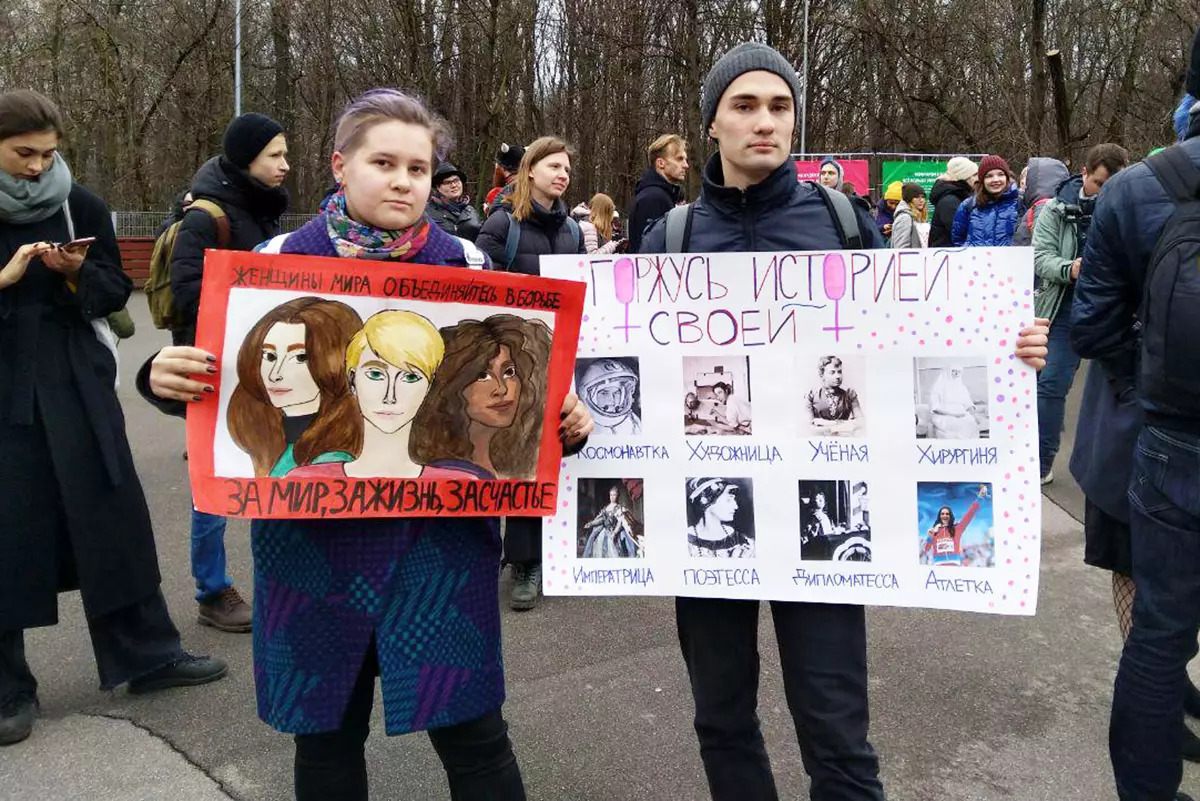 В международный женский день в столице прошли политические акции за женские права. Одну из них — митинг в Сокольниках — посетило более 400 человек, пришедших выразить свой протест против дискриминации, насилия и других проблем, с которыми сталкиваются женщины.