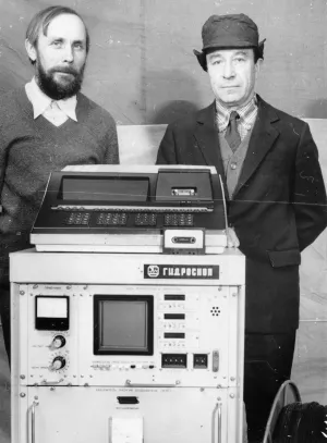 Сама идея использования земного магнитного поля в качестве внешнего магнитного поля для ЯМР-детектирования водородсодержащих жидкостей не является новой и была высказана еще в середине прошлого века. Практическое ее применение было реализовано впервые в мире в 1970-х годах в приборе «Гидроскоп», созданном учеными из Института химической кинетики и горения Сибирского отделения Академии наук СССР (ИХКиГ СО АН СССР) под руководством докт. техн. наук Анатолия Григорьевича Семёнова (1924–1990) [2] (рис. 1). «Гидроскоп» предназначен для разведки подземных вод на глубину до 120 м с помощью ЯМР в магнитном поле Земли. Это пример того, как блестящая идея не осталась лишь идеей, а получила свое техническое воплощение. «Гидроскоп» уже несколько десятилетий успешно работает как в пределах России, так и в странах ближнего и дальнего зарубежья. В конце 1990-х у него появились зарубежные «собратья».