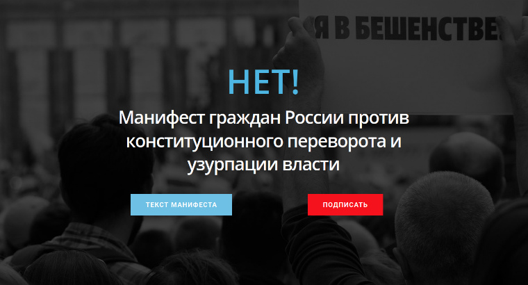Роскомнадзор заблокировал сайт проекта «Нет!» — общественной кампании против поправок в конституцию. Об этом в Twitter сообщил оппозиционер Андрей Пивоваров, координирующий кампанию: