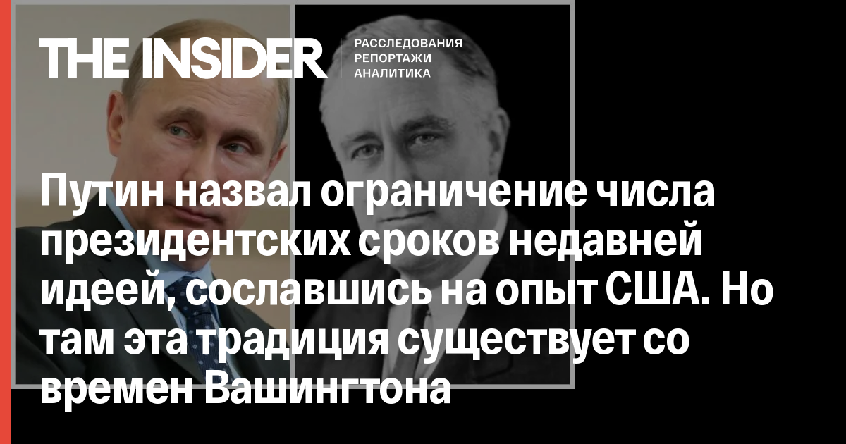 Путин назвал ограничение числа президентских сроков недавней идеей, сославшись на опыт США. Но там эта традиция существует со времен Вашингтона