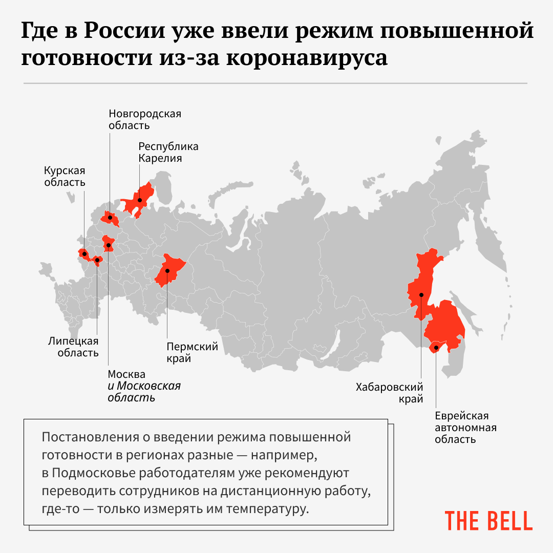 В России все пока продолжается теми же темпами, что и всю эту неделю, — за сегодняшний день официально выявлено шестеро новых больных: четыре в Москве и по одному в Калининграде и Краснодарском крае. Все они, как заявили в оперативном штабе по борьбе с эпидемией, вернулись из «стран, неблагополучных по коронавирусной инфекции». Трое из них были в Италии (сегодня вечером ее гражданам и гражданам других государств, прибывающих из этой страны, официально запретили въезд в Россию), откуда прилетели остальные — не сообщается. Издание Baza также сообщило о первом умершем якобы от коронавируса в больнице в подмосковной Коммунарке, но руководство больницы это сообщение достаточно подробно опровергло.