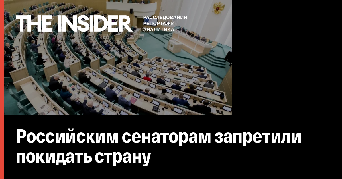 Всем российским сенаторам запретили покидать страну. Как сообщает РИА «Новости», об этом заявила спикер Совета Федерации Валентина Матвиенко.