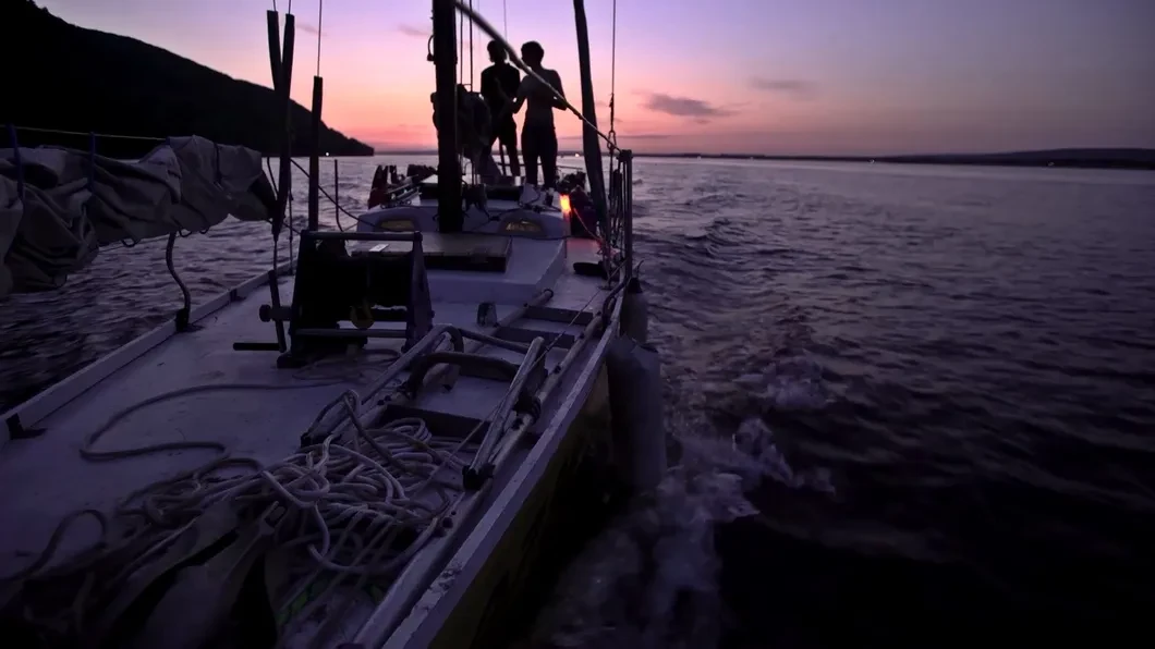 «Сами-то знаете куда едете?», — спрашивает автор юнцов, два года реставрировавших яхту-развалюху, возмечтавших проплыть на ней — чего мелочиться — всю Россию.