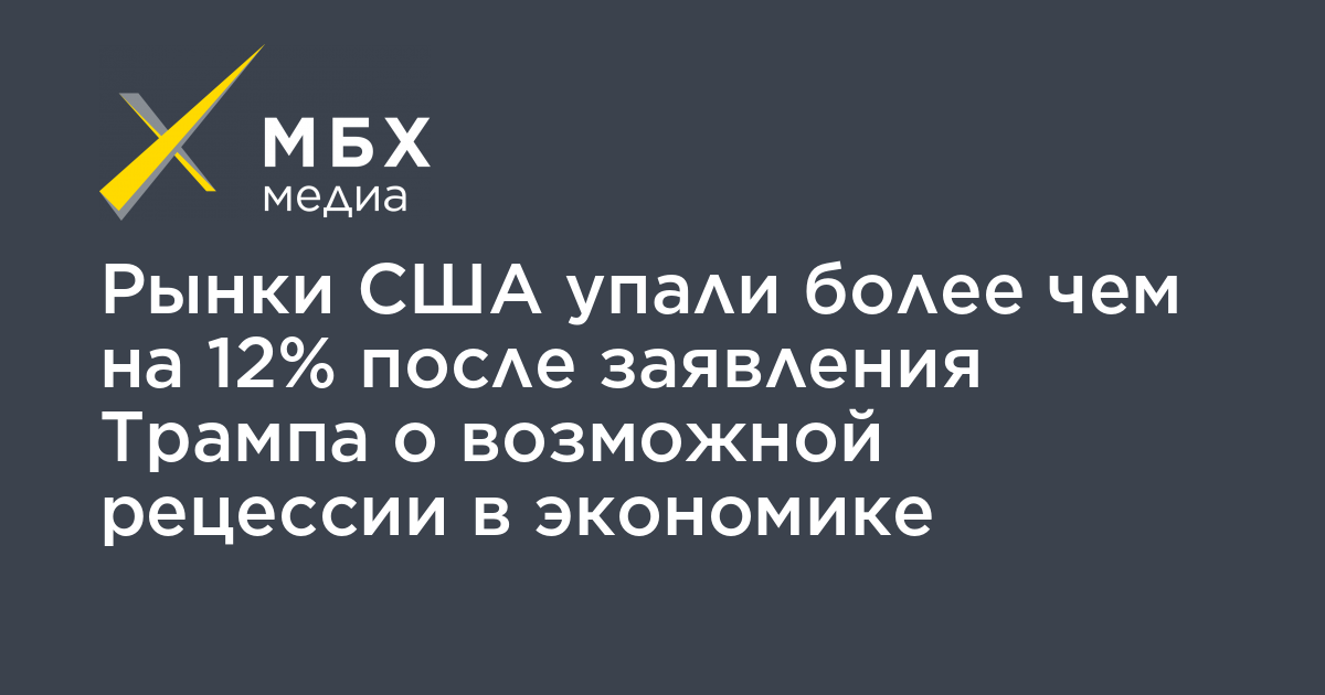 Рынки США упали более чем на 12% после заявления Трампа о возможной рецессии в экономике