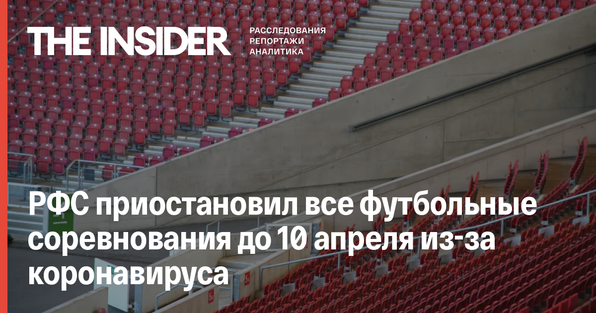 Приостановка розыгрышей связана с пандемией коронавируса. Речь идет о матчах Российской футбольной премьер-лиги, Кубка России, Футбольной национальной лиги , Профессиональной футбольной лиги и других турниров под эгидой РФС.