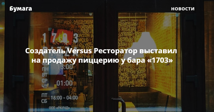 Создатель петербургской баттл-площадки Versus Александр Ресторатор Тимарцев продает пиццерию у бара «1703» на Лиговском проспекте. Об этом он объявил в инстаграме.