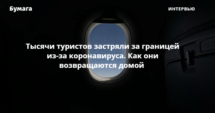 «Бумага» поговорила с петербуржцами, которые столкнулись с проблемами при выезде из зарубежных стран во время пандемии коронавируса. Они рассказывают, как добирались в Россию и помогали ли им авиакомпании и консульства.