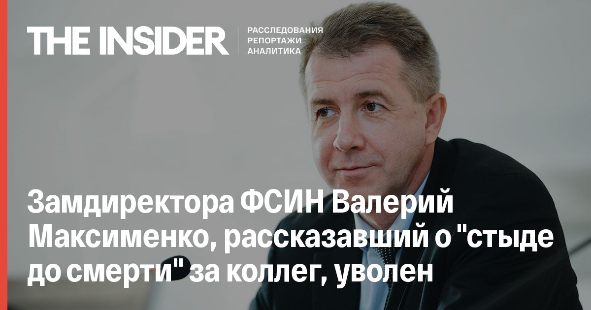 Замдиректора ФСИН Валерий Максименко, рассказавший о "стыде до смерти" за коллег, уволен