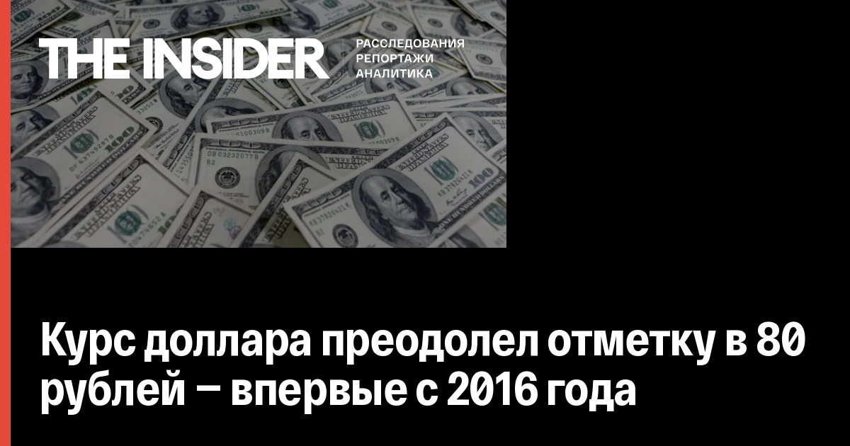 Курс доллара преодолел отметку в 80 рублей — впервые с 2016 года