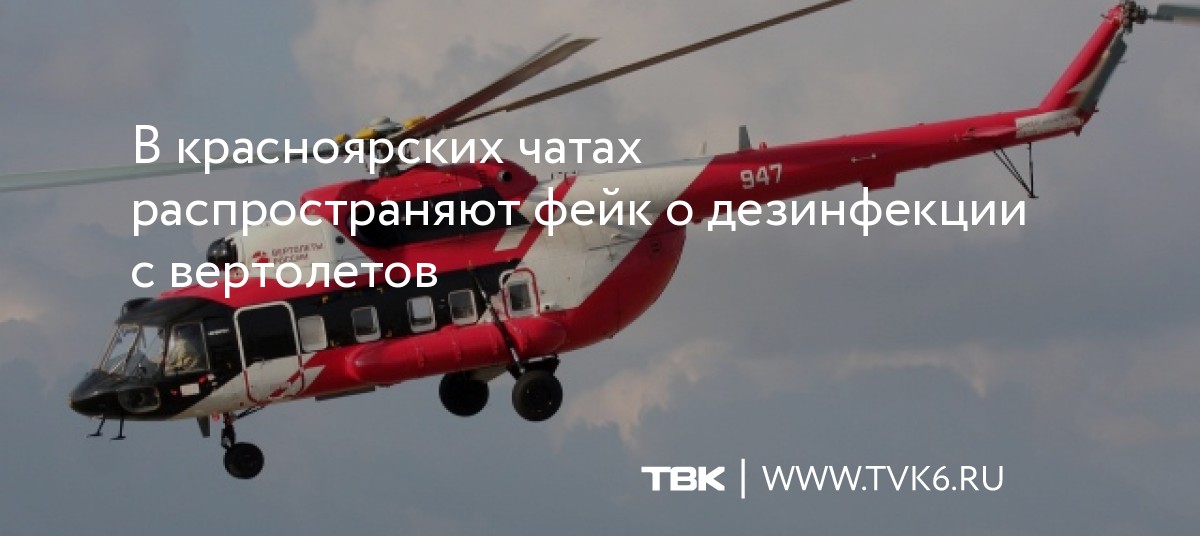 В красноярских чатах распространяют информацию о том, что в городе будут делать распыление лекарств для дезинфекции с вертолетов. Сообщается, что нужно закрыть балконы и окна, чтобы препараты не попали в дом.
