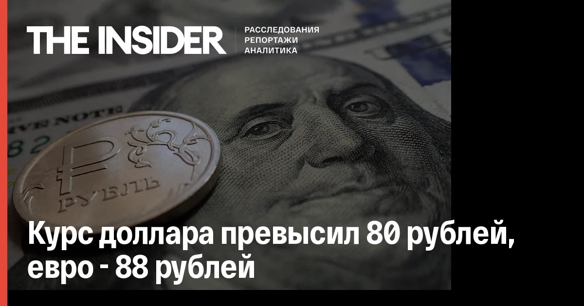 Курс доллара превысил 80 рублей, евро - 88 рублей