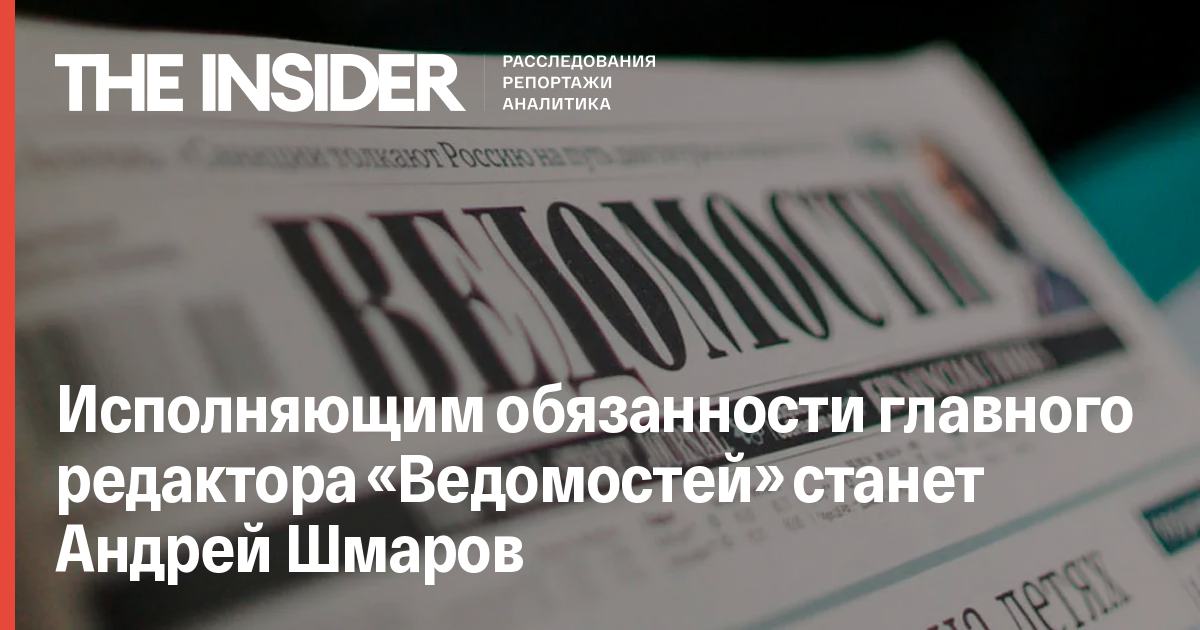 Исполняющим обязанности главного редактора «Ведомостей» станет Андрей Шмаров
