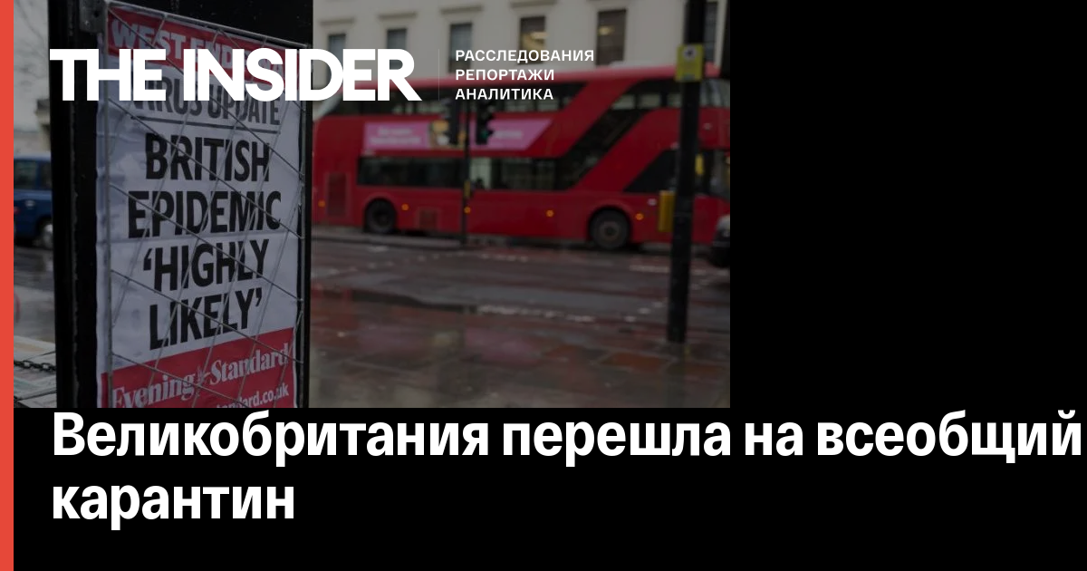 В Великобритании вводится сроком на три недели режим всеобщего домашнего карантина из-за угрозы распространения коронавируса. Об этом вечером 23 марта заявил в эфире Би-Би-Си британский премьер-министр Борис Джонсон.