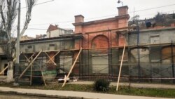 А на крыше этого трехэтажного здания Лазаревских казарм, зияющего выбитыми окнами, уже успели вырасти деревья. Дыры в окнах и дверях закрыты старыми советскими учебными плакатами, нарисованными на фанерных щитах.