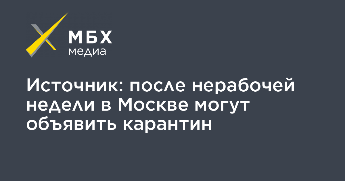 После нерабочей недели с 28 марта по 5 апреля, о которой сегодня объявил Владимир Путин, в Москве могут ввести карантин. Об этом «МБХ медиа» сообщил источник в администрации города.